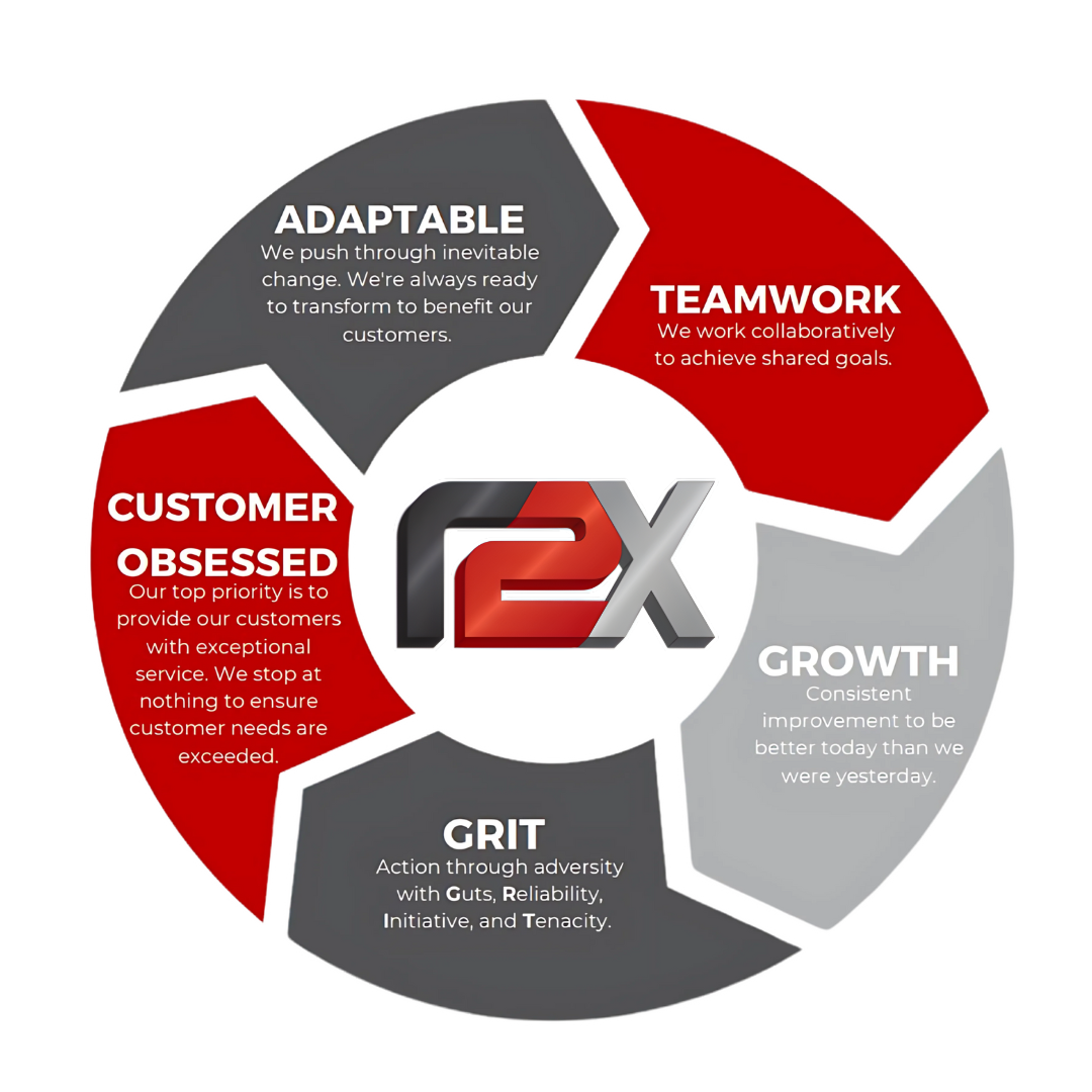 From football fields to freight lines, our story is one of grit, growth, and relentless execution. What began as a family-owned company built on teamwork and discipline has evolved into a national logistics partner trusted by shippers and carriers across the country. At R2X, we elevate people, inspire growth, and deliver excellence — every load, every lane, every time.